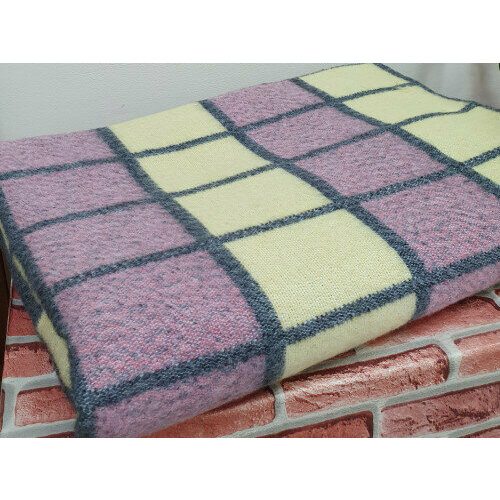 Одеяло п-ш 50% шерсть 50% ПЭ 140х205, желто-розовая клетка ОПШ-2