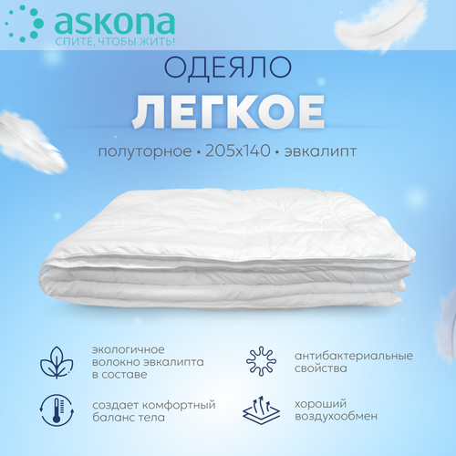 Легкое, но очень теплое одеяло Аскона изготовлено из современных и качественных материалов. В качестве наполнителя использовано пружинообразное полиэфирное волокно. Этот материал абсолютно безопасен для всех членов семьи, не вызывает аллергии. С одеялом Teplo будет тепло даже в самую холодную зиму. Одеяло Askona Тепло мягкое и легкое. Плотность наполнителя 360 г/м2. Чехол одеяла выполнен из микрофибры - 100% полиэстер данный материал быстро сохнет и не деформируется. Благодаря стежке по сегментам наполнитель в одеяле не будет комкается и не собьётся. Размеры одеяло Аскона - . одеяло евро 200х220. Одеяло 1,5 спальное, полутороспальное 140 205. одеяло 172х205. Искусственный наполнитель одеяла прекрасно пропускает воздух и сохраняет тепло, создавая оптимальные условия для Вашего сна и отдыха.