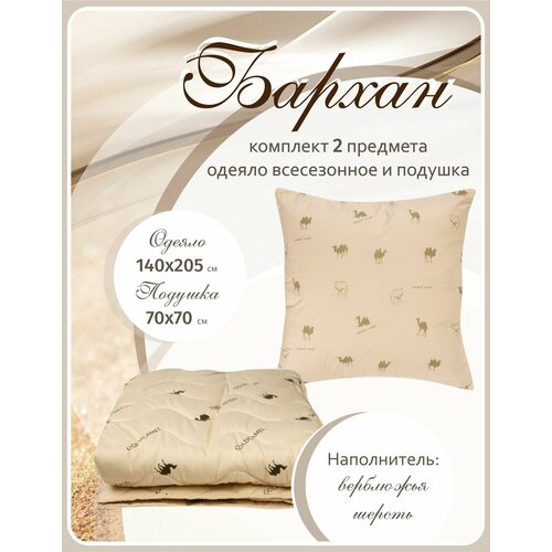 Одеяло 1.5 всесезонное и подушка 70х70 верблюжья шерсть