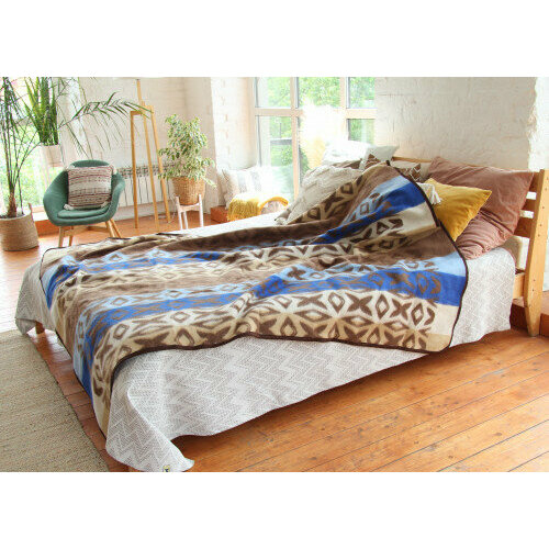 Одеяло п-ш 40% шерсть жаккардовое 180*205 в канте, ромбики синие 6-1