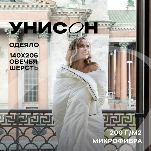 Одеяло / одеяло зимнее / летнее одеяло / одеяло евро / одеяло зимнее / одеяло шерстяное / одеяло "Унисон" Atmosphere 210х220 овечья шерсть арт. 85