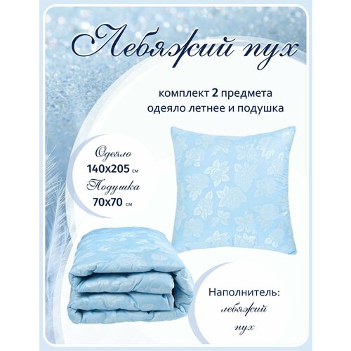 Одеяло 1.5 легкое и подушка 70х70 комплект Лебяжий пух
