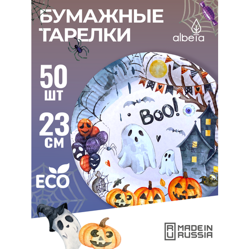Тарелки одноразовые бумажные набор 50 шт 23 см, принт "Halloween" ("Хэллоуин")