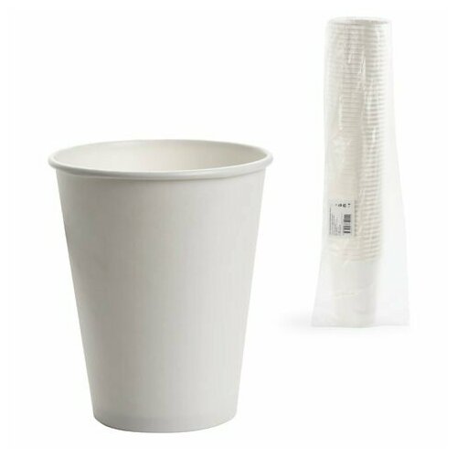 Стакан одноразовый бумажный 300 мл комплект 50 шт, однослойные, белые, холодное/горячее, формация, HB90-430-0000-50