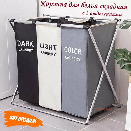 Корзина для белья 3-х местная , корзина сортировочная для одежды, корзина "Лёгкая стирка"