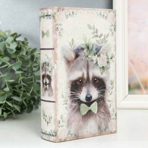 Сейф-книга дерево кожзам "Енотик в веночке" 21х13х5 см