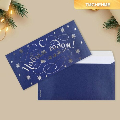 Подарочный конверт «С Новым годом», снежинки тиснение, дизайнерская бумага, 22 × 11 см