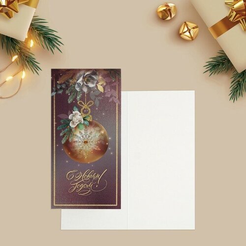 Новогодняя открытка "Елочные игрушки" с конвертом. Формат А6 10,5*14,8 см.