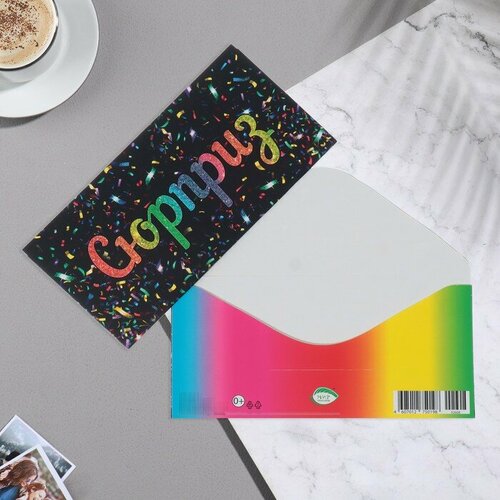 Конверт для денег "Сюрприз" конгрев, глиттер, радужный тон, 17х8 см (комплект из 30 шт)