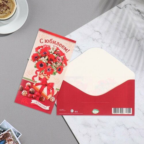 Конверт для денег "С Юбилеем!" мак, конфеты, красный тон, 16,8х8,3 см (комплект из 40 шт)