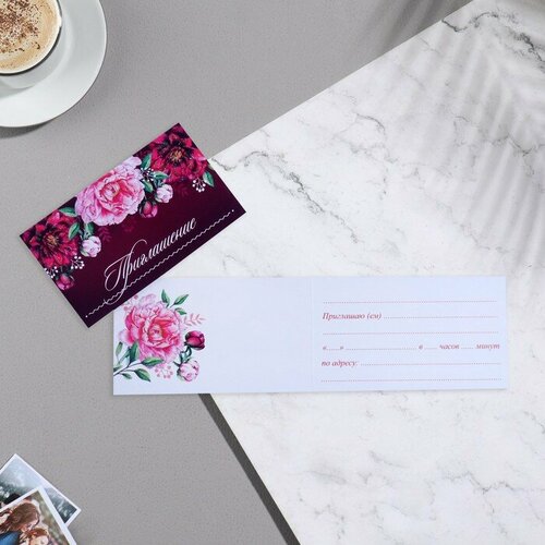 Приглашение "Пионы" 25х8 см(20 шт.)