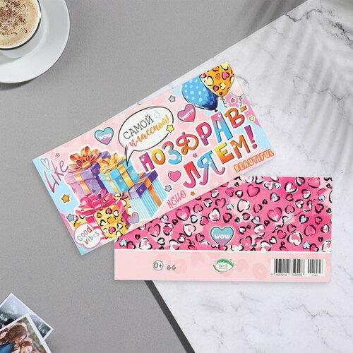 Конверт для денег "Поздравялем!" розовый фон, 17х8 см, 10 шт.
