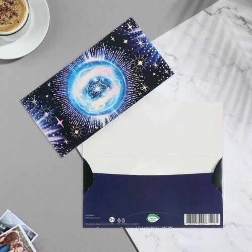 Конверт для денег "Счастливой судьбы!" тиснение, космос, синий фон, 16,5х8,5 см(10 шт.)