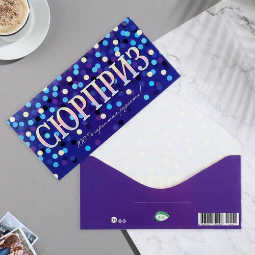 Конверт для денег "Сюрприз!" глиттер, блики, фиолетовый фон, 20,7х23 см(10 шт.)