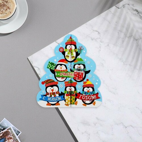 Мини-открытка "С Новым Годом!" термография, пингвины, 16х10 см (20 шт)