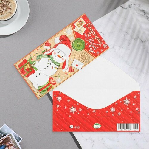 Конверт для денег "Сюрприз на Новый Год!" глиттер, конгрев, печать, 16,5х8,5 см (10 шт)