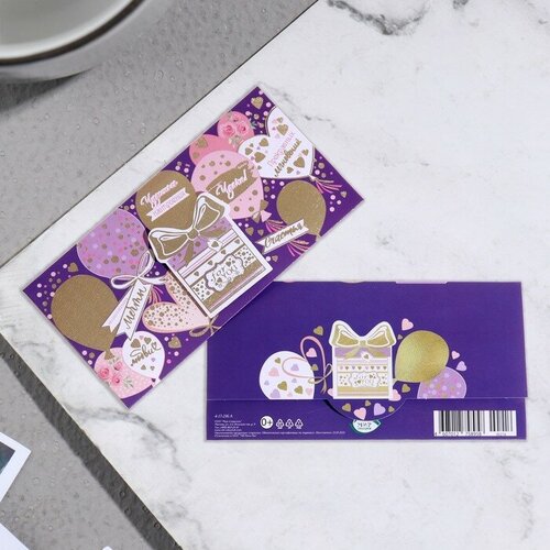 Конверт для денег "Подарок" фиолетовый фон, 16х8см (10 шт)