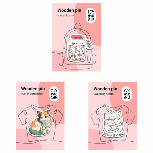 Набор деревянных значков MESHU "Lots of cats", каширование, 3шт.