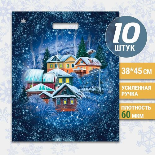 Пакет подарочный полиэтиленовый ПВД с усиленными ручками новогодний детский с днем рождения