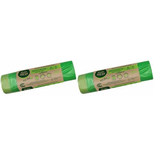Master Fresh БИОпакеты для мусора с завязками, 35 л, 15 шт в уп, 2 уп
