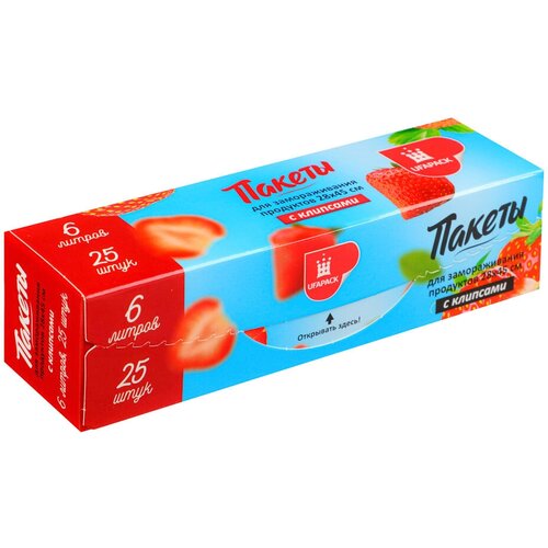 Пакеты для заморозки продуктов «Уфа ПАК», 6 литра, 28×45 см, 25 шт, с клипсами