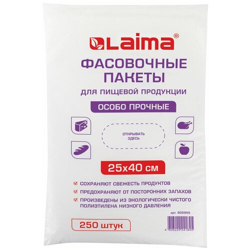 Пакеты фасовочные 25х40 см, комплект 250 шт, ПНД, 15 мкм, особо прочные, евроупаковка, LAIMA, 605955, комплект 3 шт.