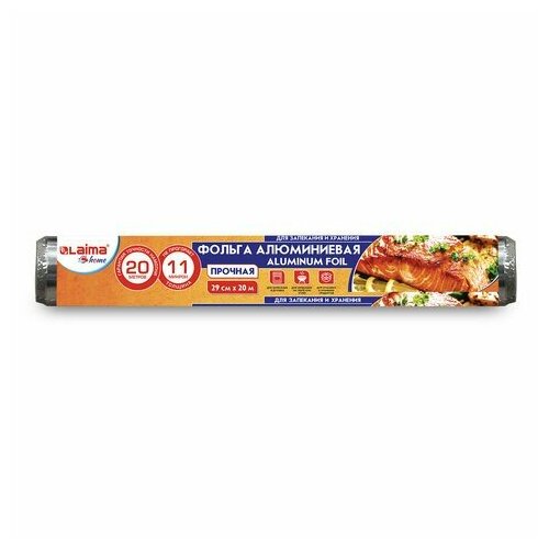 Фольга пищевая алюминиевая прочная, 29 см х 20 м, толщина 11 мкм, LAIMA, 607803