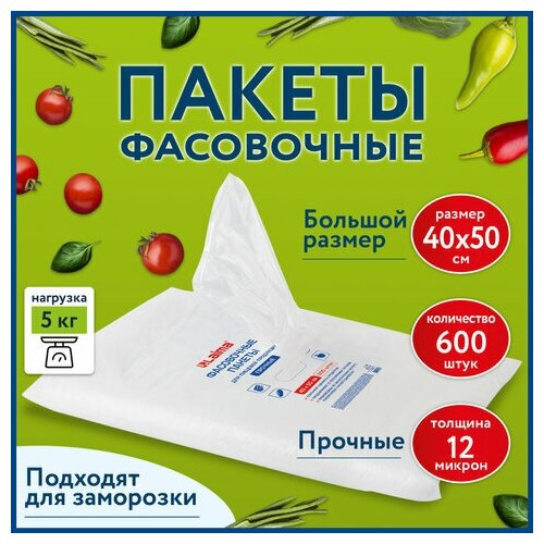 Пакеты фасовочные 40*50см комплект 600шт, ПНД 12мкм, прочные, евроупаковка, LAIMA, 608531