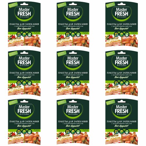 Master Fresh Пакеты для запекания, с жаропрочными клипсами, 30 см х 40 см, 5 шт в уп, 9 уп