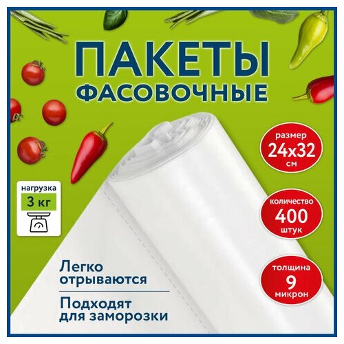 Пакеты фасовочные 24*32см комплект 400шт, ПНД 9мкм, рулон без втулки, LAIMA, 608528