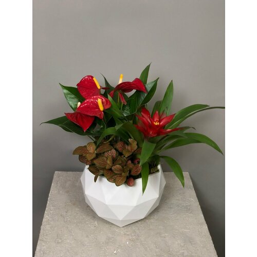 Тилландсия, фиттония и каланхоэ в пластиковом кашпо от бренда Margo plants