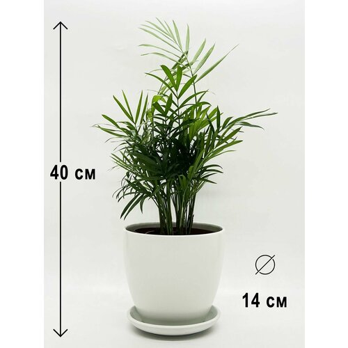 Хамедорея Элеганс в керамическом сером горшке с поддоном, высота композиции 35-40см