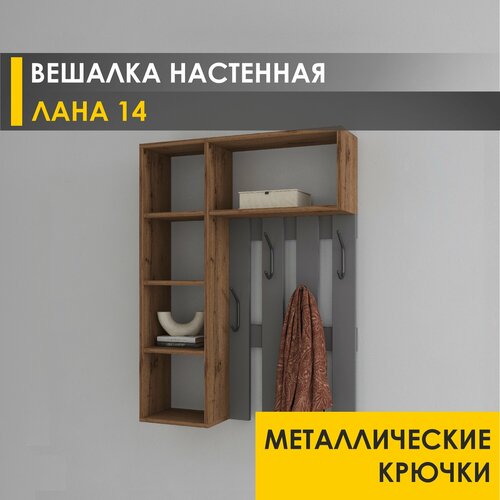 Панель с крючками настенная Лана 14 (04) Дуб Вотан/Оникс, 75х20х100 см