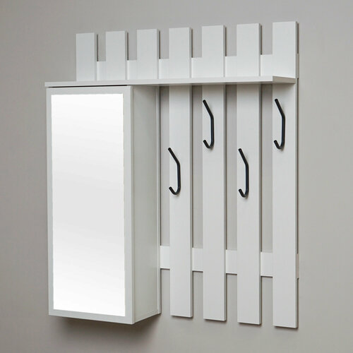 Вешалка настенная в прихожую для одежды белая, черные крючки