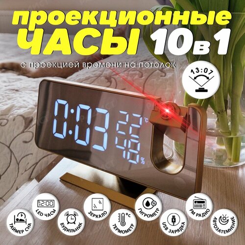 Часы - Будильник с Проектором Времени на Стену и Потолок (Золото)