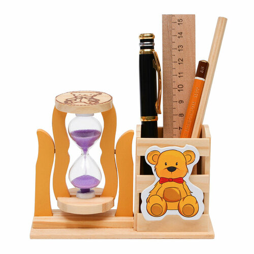 Песочные часы "Медвежонок", сувенирные, с карандашницей, 13.5 х 13.5 х 10 см, фиолетовые