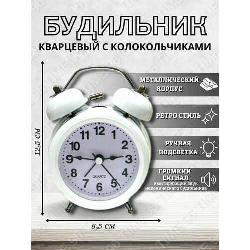 Будильник настольный, бесшумный механизм, с колокольчиками, металлический, в ретро стиле