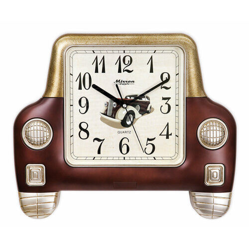 Большие золотисто-бордовые настенные часы MIRRON S25A-1/Автомобиль/Часы машина/Часы в детскую/часы для мальчика в комнату/часы в автосалон/декор