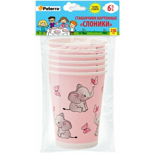 Бумажные стаканы Paterra Слоники 250мл 6шт х2шт