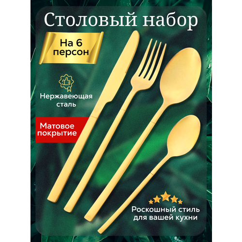 Набор столовых приборов из нержавеющей стали "Золотой матовый" на 6 персон, 24 предмета