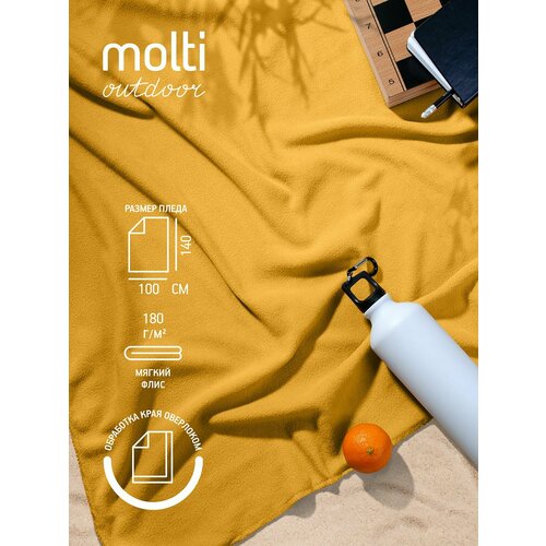 Плед флисовый molti Warm&Peace пляжное покрывало, коврик для пикника, 100х140 см, желтый