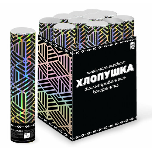 Пневмохлопушка (12/30 см), Геометрия, Прямоугольники фольга, Золото/Серебро, 1 шт.