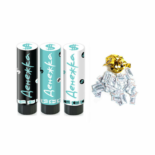 Хлопушка пружинная (4/10 см), Денежка, Деньги, Доллары, серпантин фольга, Золото, 3 шт.