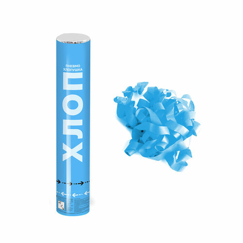 Пневмохлопушка (12/30 см), Хлопни, Серпантин тишью, Голубой, 1 шт.
