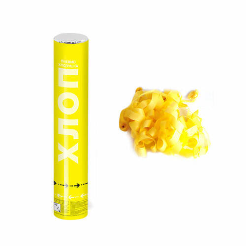 Пневмохлопушка (12/30 см), Хлопни, Серпантин тишью, Желтый, 1 шт.