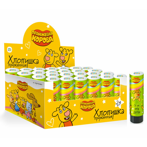 Хлопушка пружинная (4/10 см), Оранжевая корова, Звезды тишью, Зеленый, 1 шт.