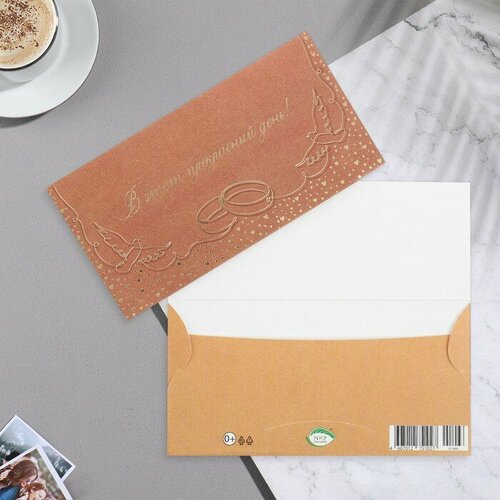 Конверт для денег "В этот прекрасный день!" тиснение, кольца, 16,5х8,5 см 10073861