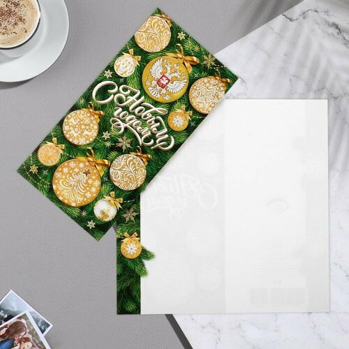 Открытка-евро "С Новым Годом!" ветви ели, 10,5х21,5 см (10 шт)