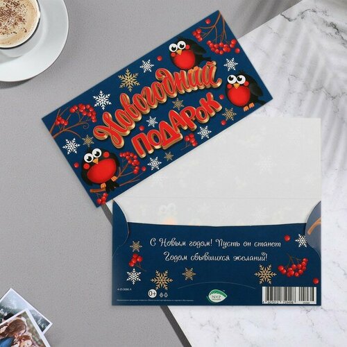 Конверт для денег "Новогодний подарок" снегири, 16,5х8,5 см (комплект из 40 шт)