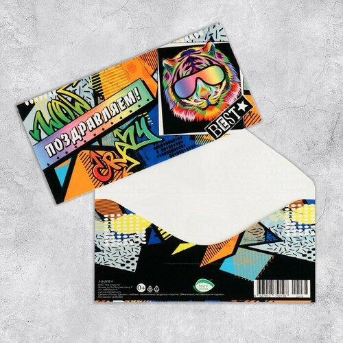 Конверт для денег "Поздравляем!" глиттер, тигр, 17х8,3 см 9416207